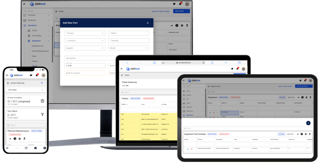 Consistent maintenance is critical to equipment reliability. QSRSoft Equipment allows you to enter and customize the important PM tasks for all your equipment.