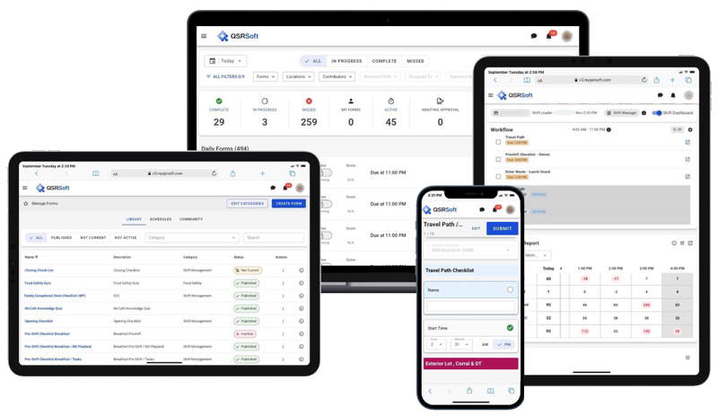 With QSRSoft Forms, pen-and-paper tracking is modernized and digitized for greater accountability, easier scheduling, and flexible reporting. Make running your business easier and more efficient with QSRSoft Forms.